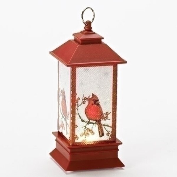 A lighted red lantern shows a cardinal sitting on a holly branch. Add some festive fun to your Christmas tree or as a holiday gift! This lantern measures 2 x 2 x 5 and weighs .9 pounds.