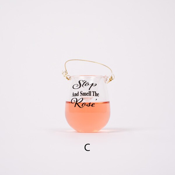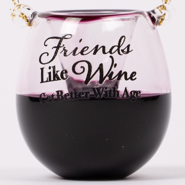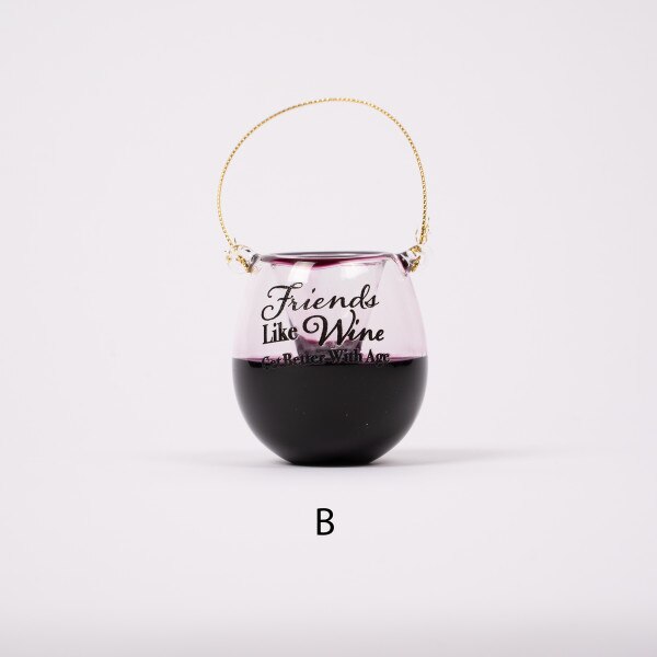 This assortment features 3 different colors of wine and different sayings on each. Version A says “This is my happy glass”, version B says “Friends like wine get better with age”, version C says “Stop and smell the Rose' ”. Each sold separately and measure 2 inches in height.
