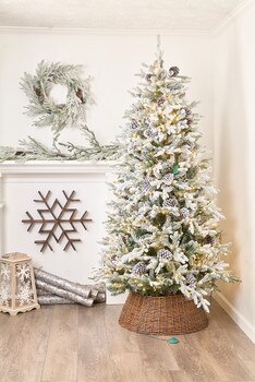 Create a winter wonderland in your own home with our flocked snowy trees. These enchanting artificial Christmas trees are coated with a delicate layer of snow-like flocking, evoking the beauty of freshly fallen snow. Available in both pre-lit and non-lit options, our flocked snowy trees provide you with the flexibility to choose the perfect lighting ambience for your holiday setting. The snowy branches, whether pre-lit or non-lit, offer a stunning backdrop for your holiday decorations, adding a touch of elegance and charm to your festive atmosphere.