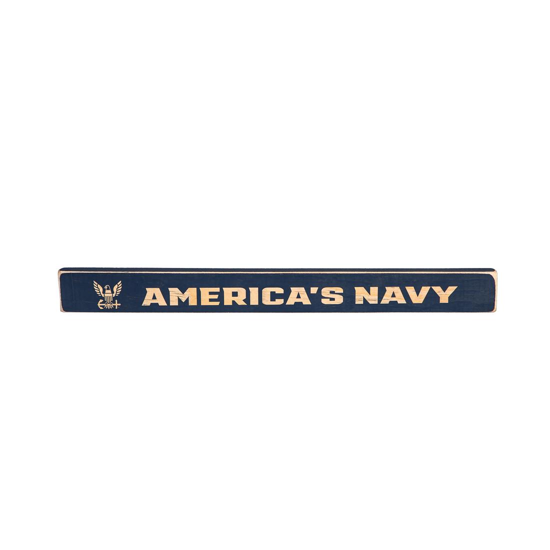 Celebrate the Seaman in your life with this Navy Wood Sign. It features the Navy emblem and the words "America's Navy". Measures 18 inches in length.