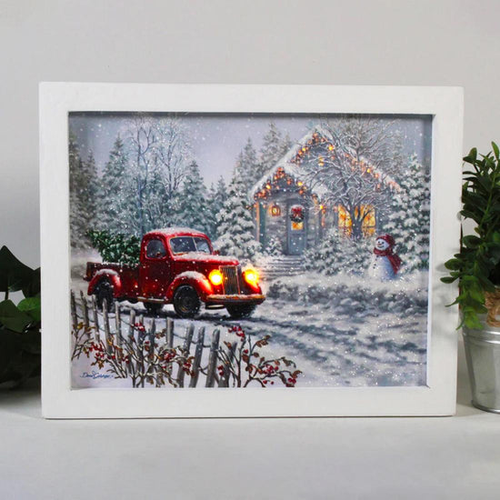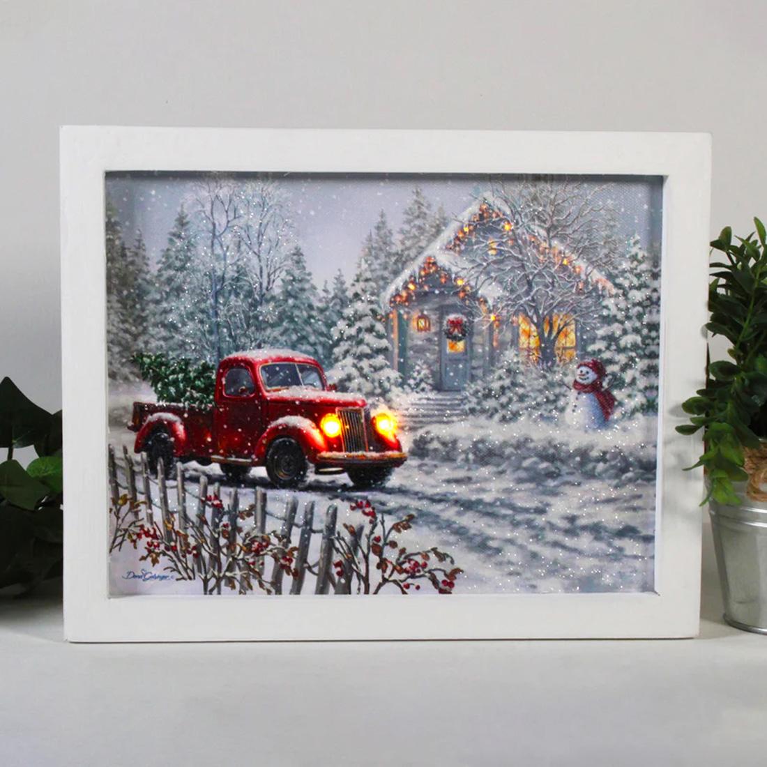 rustic barn wood frame, LED/fiber optic lit canvas, requires AA batteries (not included)