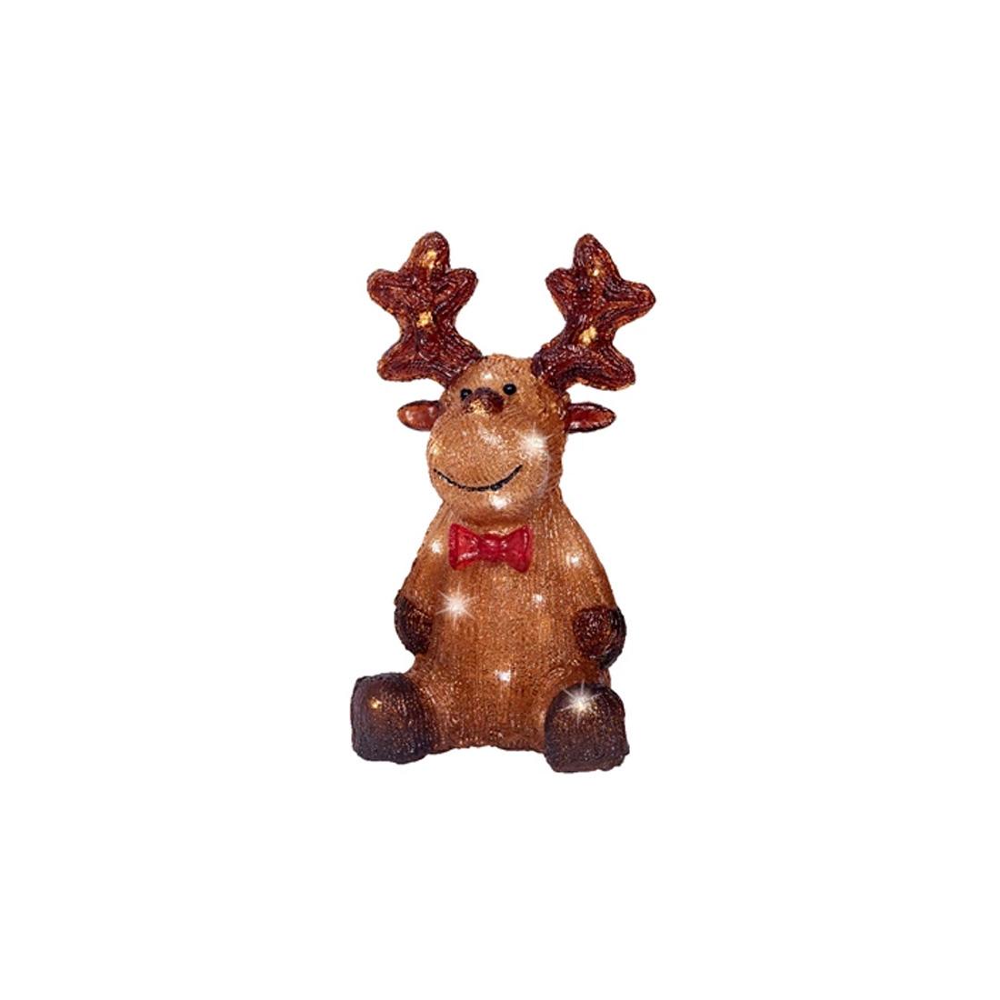 Light up the holiday season outside your home with this LED reindeer and watch the excitement begin. It features a brown reindeer with a red bow tie and a big smile on his face, with 30 cool white LED lights that require batteries. Outdoor use. Timer 6 hours on/18 hours off.