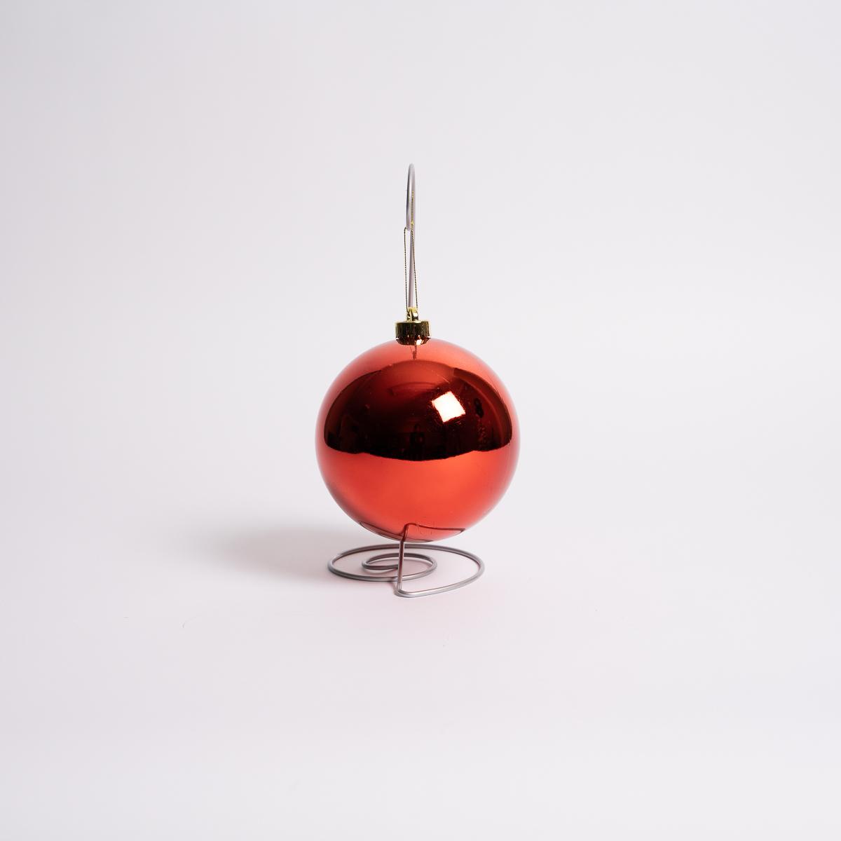 This box of 2 red ball ornaments are made of shatterproof plastic and measure 5.51 inches in diameter.