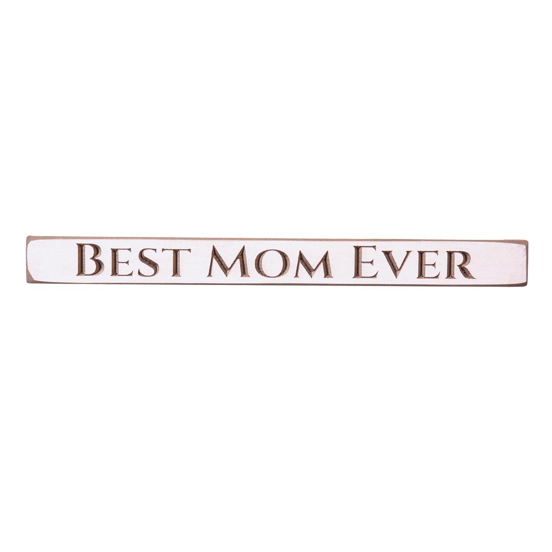 Celebrate you Mom and let her know how much she really means to you by giving her this wooden sign as a gift to display in her home. It features the words âBest Mom Everâ. Measures 18 inches in length.
