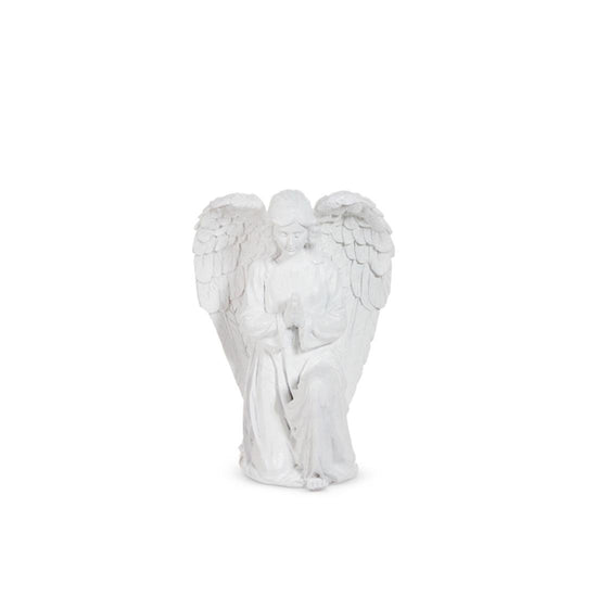 Add some elegance to your home decor with this kneeling angel. She is solid white like the snow, her head is bowed, eyes closed, and her hands together as she prays over your family. Measures 19 inches in height.