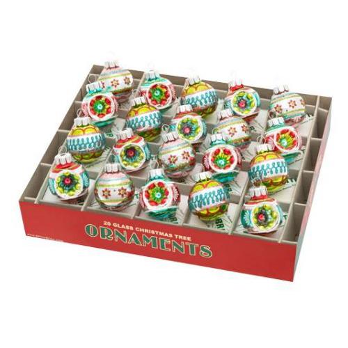 A colorful assortment of baubles and reflector rounds. Shiny Bright brings you a new and unique blend of colors for the 2021 holiday season! Made from glass, these ornaments have a 1.25 inch diameter.