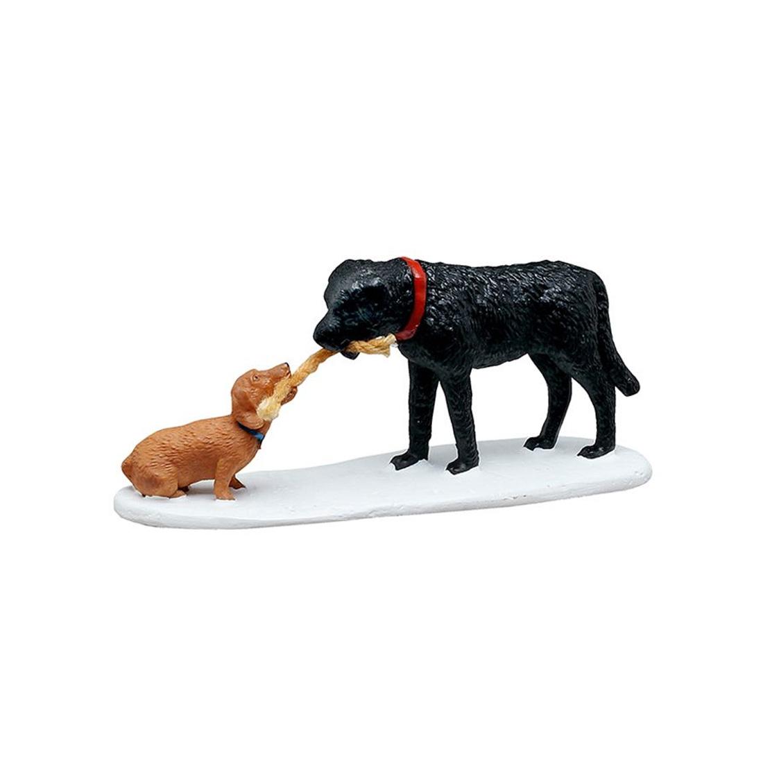 Who's Pulling Who by Lemax Villages. There's a tug-o-war going on between these two dogs. Which one will let go or be pulled through the snow? Measures 1.42 inches in height.Â
