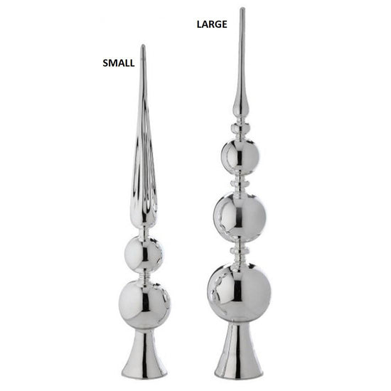 Add a touch of elegance to your holiday decor by displaying this silver glass finial on the top of your tree. Measures 29.5 inches in height. Large sold separately.