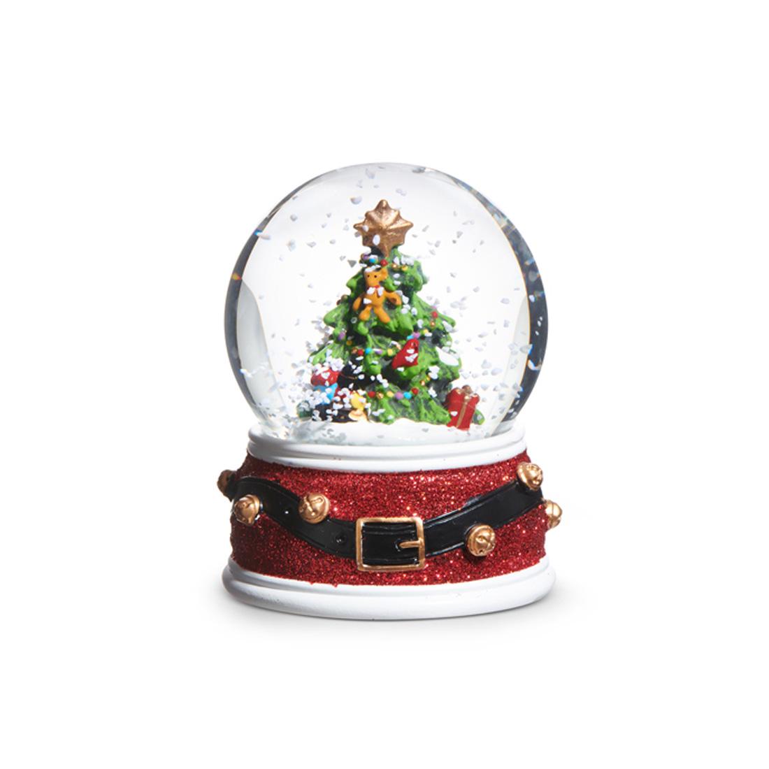 Bring the magic of Christmas into your home with this water globe. It features a Santa belt base and a decorated Christmas tree inside. Measures 3.5 inches in height.