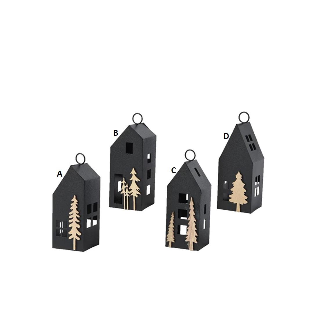 Light up your holiday season with this assortment of lanterns. It features four black lanterns to choose from. Each has a different style of tree scenery. Each sold separately and measure 6.69 inches in height.