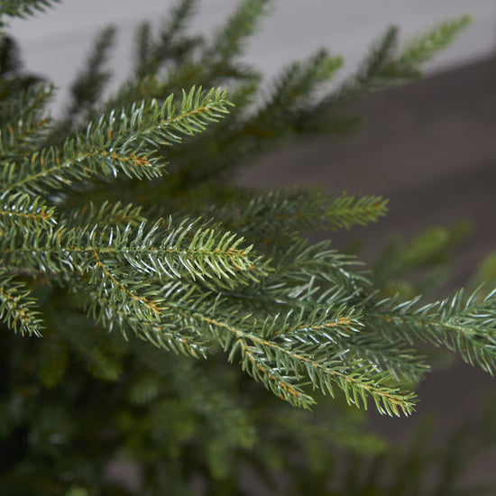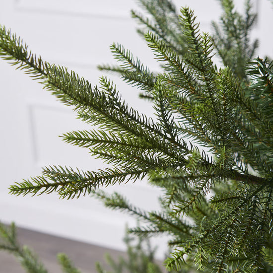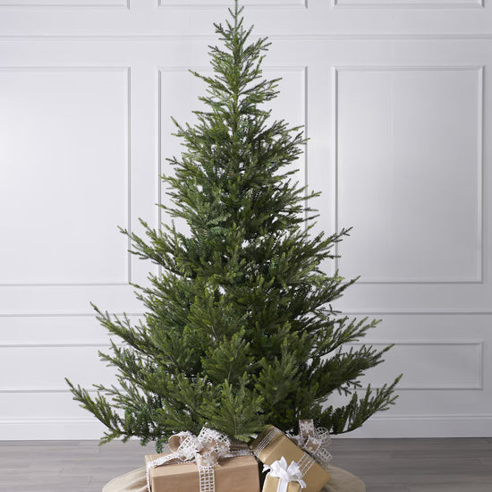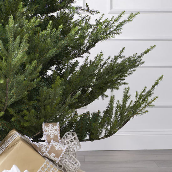 - 6ft Green Norway Spruce Christmas tree features 2,837 tips with hinged branches.