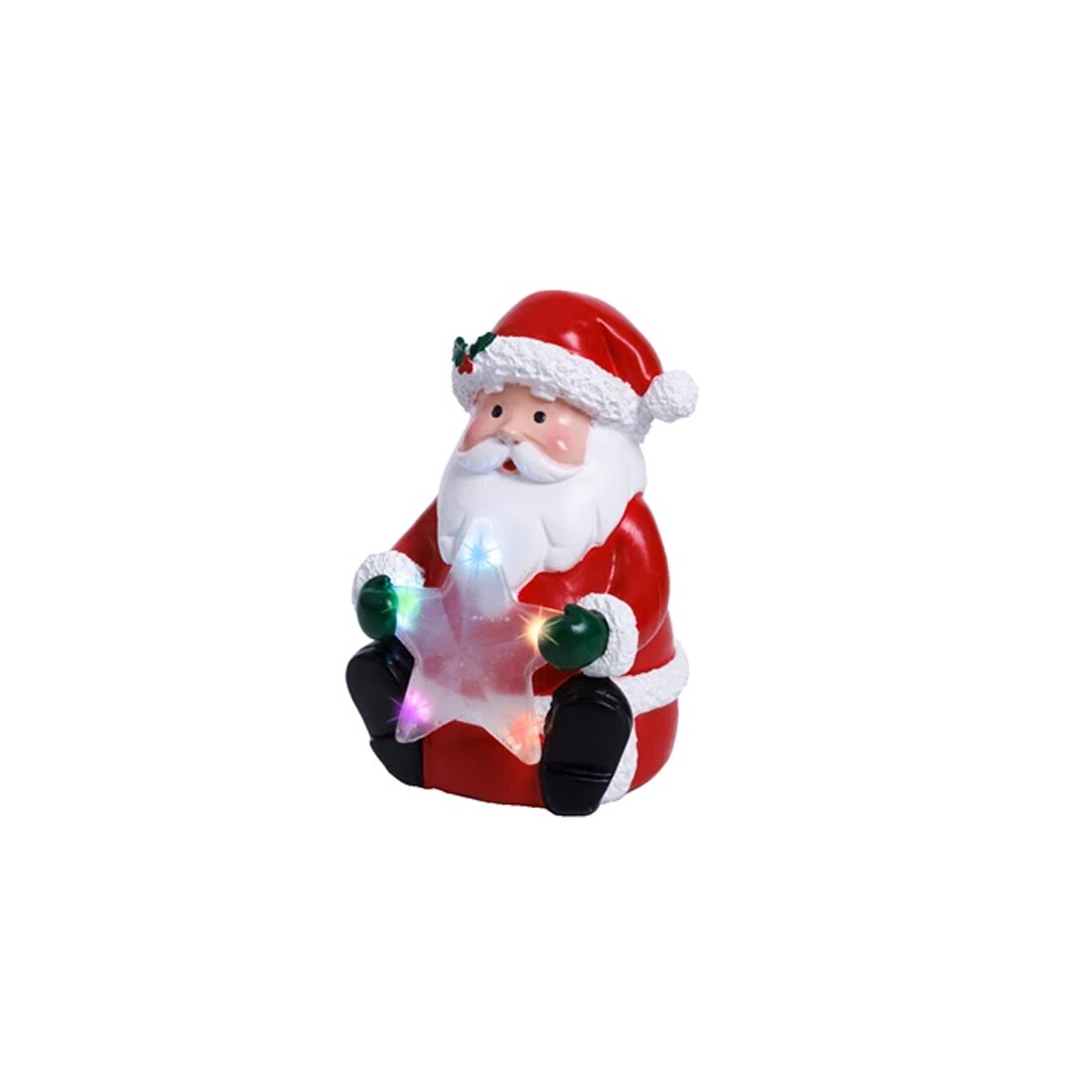 Add some fun to your holiday with this LED Santa. It features Santa dressed in his traditional red suit, holding a big star in his hands and rosy red cheeks on his face. The star lights up with 5 LED lights that have a color changing effect when using batteries. Measures 6.1 inches in height. Indoor use only.