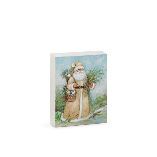Add a touch of the ocean life to your home decor with this Coastal Santa block. It features Santa collecting seashells and seagrass at the edge of the ocean. Measures 8 inches in height.