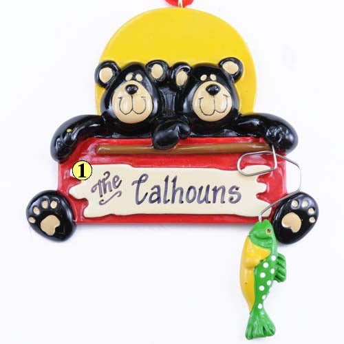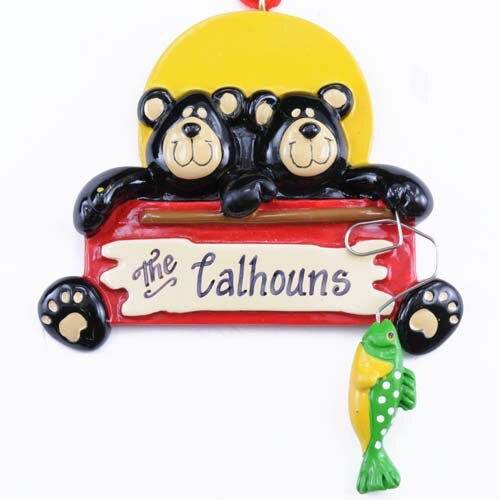 These two bears are proudly holding their catch. Personalized with your name or that of a friend makes this the perfect keepsake ornament for years to come. Measures 3.25 inches in height.