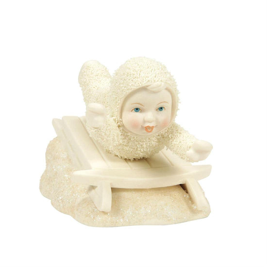Belly Sleddin' Baby by Department 56 is part of the âSnowbabiesâ collection. This snowbaby knows how much fun sledding is, so he is headed downhill head first. Measures 2.83 inches in height.
