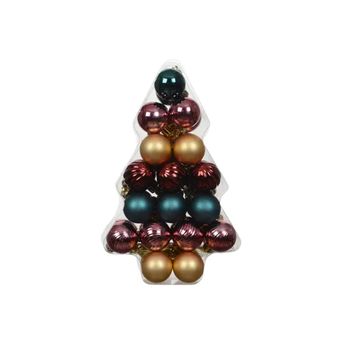Blush Red Green Gold Tree Boxed Mini Ball Ornaments
