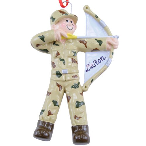 Bow Hunter ornament will delight all those who live to hunt. Personalized with a name, it will surely be a keepsake ornament for years to come.