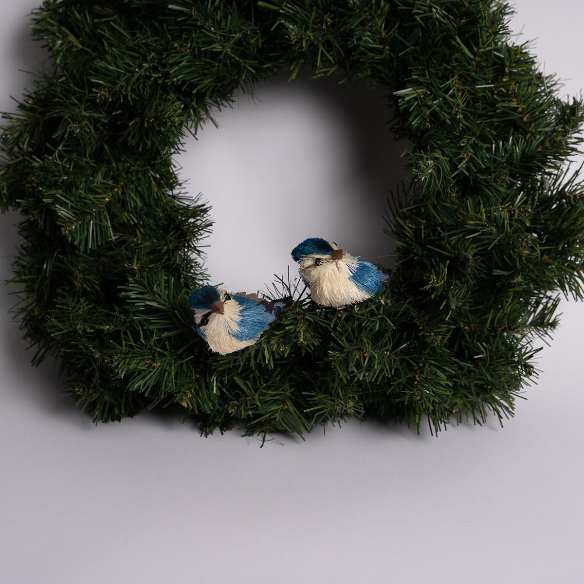 These sisal blue birds are perched on a twig and can be hung or clipped onto the branches of your tree (each sold separately). This item measures 2 inches in height.