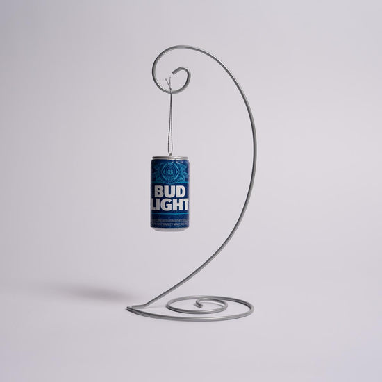 This Bud Light beer can ornament is a delightful addition to any holiday decor or Christmas tree. This ornament features a classic blue can of Bud Light with glitter on the outside to give a frosty, cold look. It measures 3 inches in height.