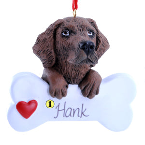 Pay tribute to man`s best friend with the cute Chocolate Labrador Retriever Dog Ornament. This little pup is observing the Christmas festivities from over a big white bone which you can personalize with his/her name. During the season of family and friends, don`t forget to represent your beloved pet on the Christmas tree!
