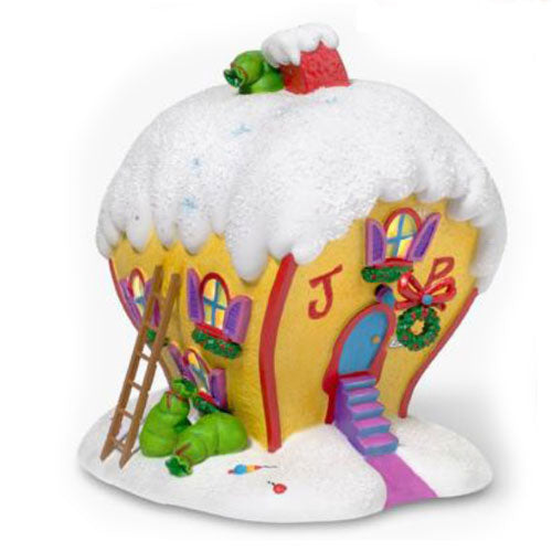 Brightly painted yellow, the home of Cindy-Lou Who will delight even the grinch-iest! From the wonderful world of Dr. Seuss and handcrafted to the delight of Seuss fans everywhere. You can see the ladder the Grinch used to ransack the house and some of the bags of stolen goods.