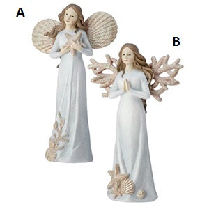 Add a touch of coastal life to your home decor with this assortment of angels. One has seashell wings while the other has coral reef wings. Each sold separately and measure 12.5 inches in height.