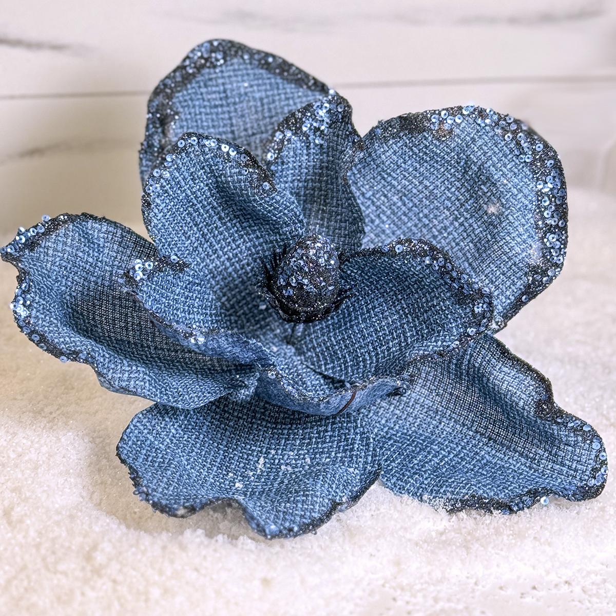 This magnolia is featured with beautiful blue pedals that looks like denim fabric. This flower is the perfect item to spruce up your blue themed décor.