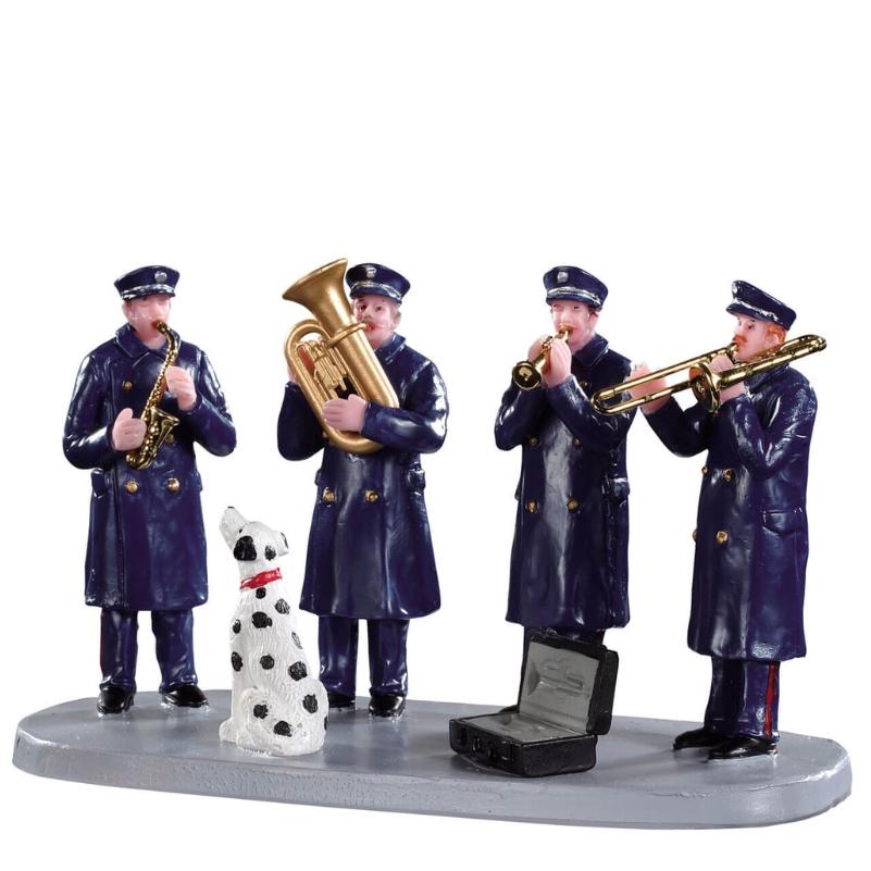 The firehouse dalmatian watches his fireman friend playing the Saxophone. Four members of the firehouse play in this band. Made from quality resin and measures 2.68 x 5.00 x 2.32 inches.