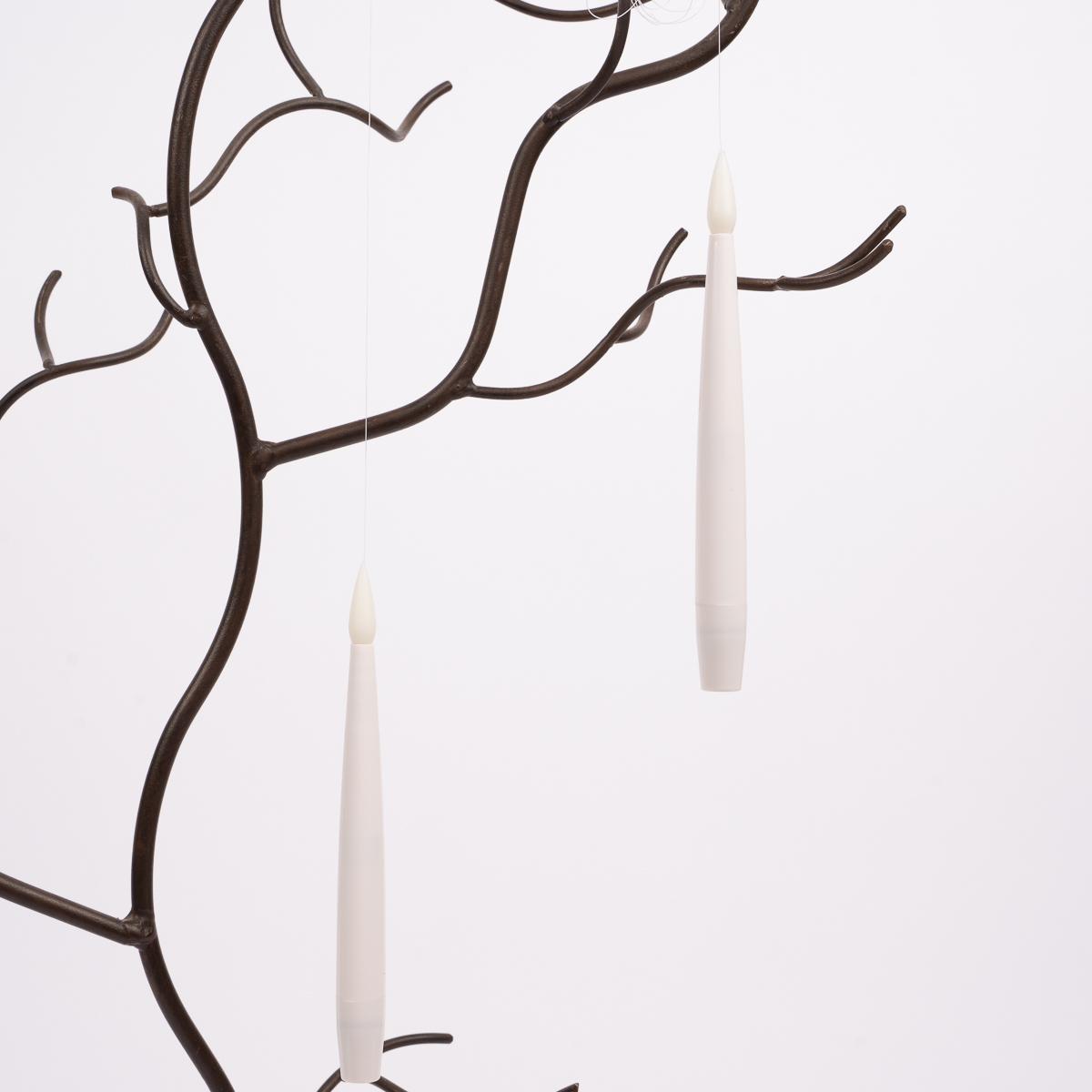 Add a little ambience to your holiday season with this 10 piece set of floating candles. Each candle is on an ornament string to give them a a floating effect and produce a warm white glow when lit. Measure 6 inches in height and require 1-AAA battery each. Remote control included. Indoor use only.