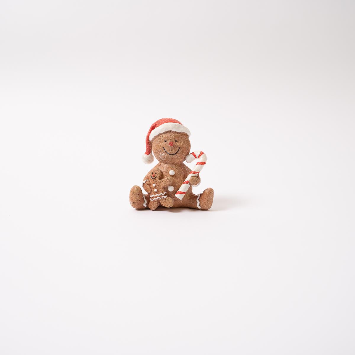 If you love gingerbread, then you may want to add this item to your holiday decor. It features a gingerbread man wearing a Santa hat while holding a candy cane in one hand and a gingerbread cookie in the other. Measures 3.5 inches in height.