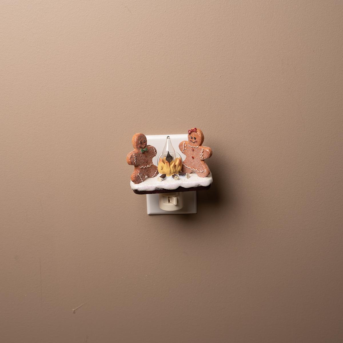 This nightlight features a gingerbread boy and girl by the campfire and measures 4.5 inches.
