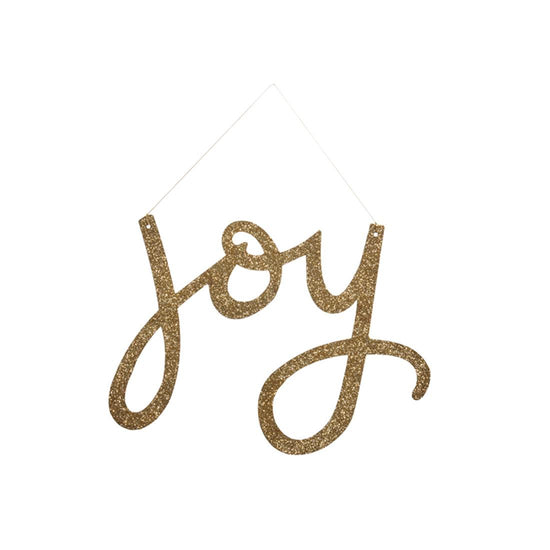 Spread some holiday cheer by displaying this ornament in your home. It features the word âJoyâ in gold letters. Measures 11.25 inches in height.