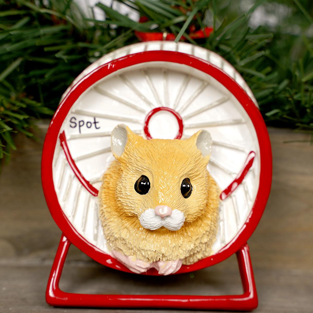 This ornament would be great for the hamster lover in your life. It features a hamster getting its exercise on the wheel. It can be personalized and measures 3.25 inches in height.