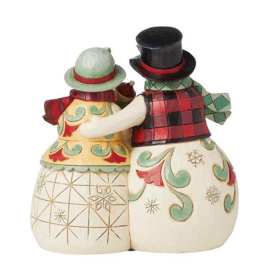 "Love Keeps Us Warm" by Jim Shore, features a snowman family of 4 dressed in their Winter attire. Measures 5.6 inches in height.