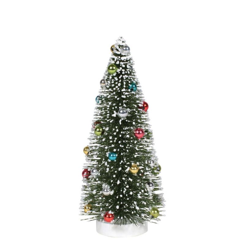 Bright glass looking balls adorn a tall sisal tree, perfect as a display centerpiece. This Village tree is hand-crafted, sisal. Measures 9 x 4 x 4 inches. Introduced January 2020.