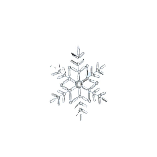 Bring a touch of the Winter season into your home with this snowflake ornament. It is clear with jewels and a hint of glitter. Measures 8 inches in height.