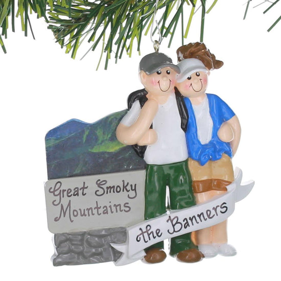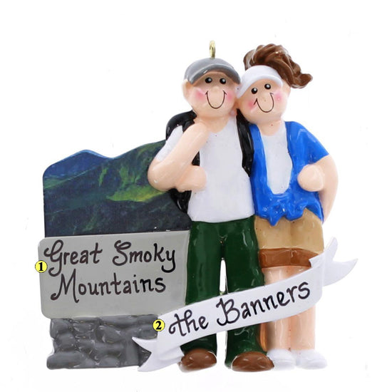 Remember your trip to the mountains with your special someone by having this ornament customized with your names on it. Measures 3.5 inches in height.
