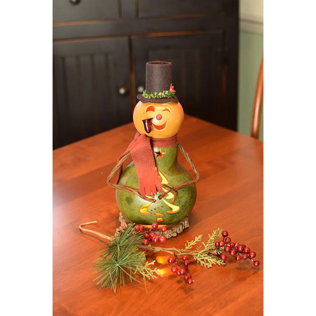 Medium Pinewoods Gourd by Meadowbrooke Gourds. Measures 12 inches in height. Lights up using electric light included.
