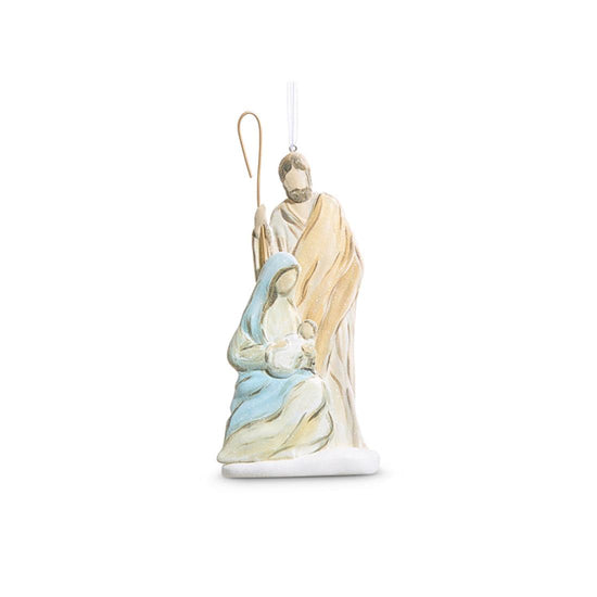 Celebrate the true meaning of Christmas by displaying this ornament in your home for the holiday season. It features Mary and Joseph watching over baby Jesus. Measures 7 inches in height.