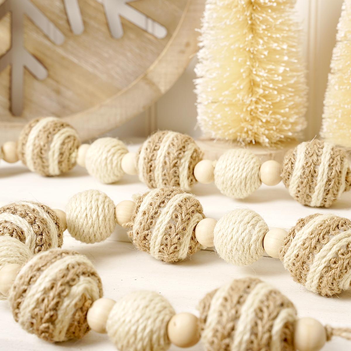If you like the natural look, then you may want to add this woven jute bead garland to your decor. Measures 48 inches in length.