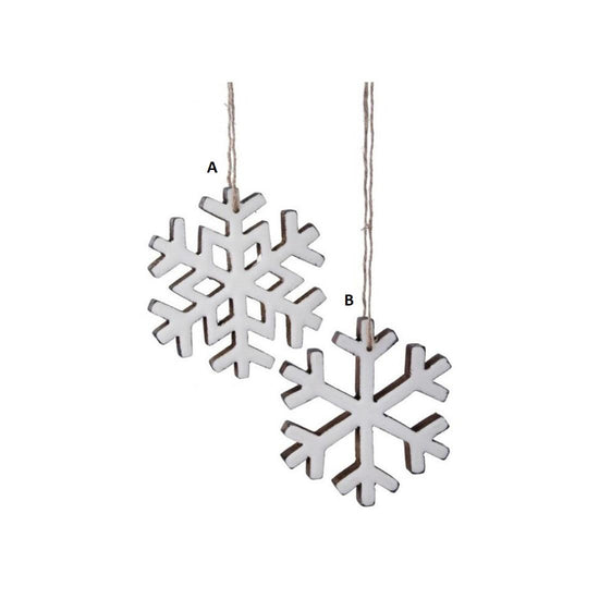 Add a touch of Winter to your tree for the holiday season with this assortment of snowflake ornaments. It features two different shaped snowflakes, choose your favorite design or collect them both. Each sold separately and measure 4 inches in height.Â