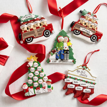 We offer one of the largest selections of personalized family Christmas ornaments—perfect for families of every size, from couples to groups of 12 or more. Whether you're celebrating a growing family or capturing the joy of a bustling household, our wide variety of custom family ornaments ensures every loved one is included on your tree.