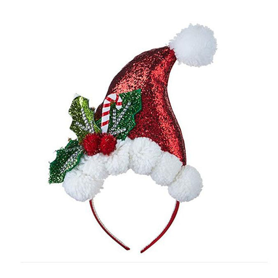 Have fun during the holiday season by wearing this Santa hat with holly headband to your parties and get togethers. Measures 13 inches in height.