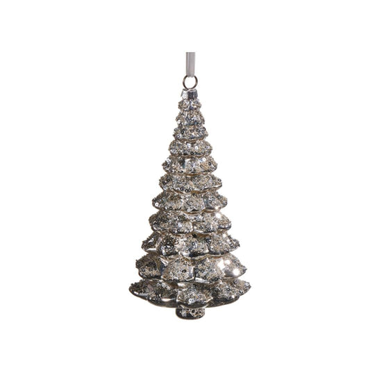 Brighten up your holiday season by adding this ornament to your Christmas decor. This little tree is silver in color with lots of glitter to make it sparkle. Measures 7 inches in height.