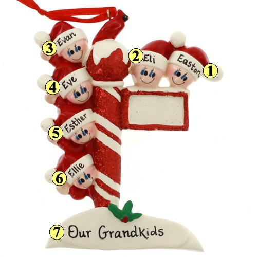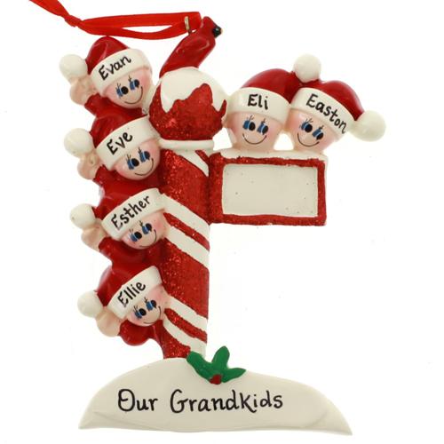 Happiness radiates from the faces of the family hanging out on this festive street post. Personalized with the names of your family or a friends, this ornament is the perfect holiday gift. Measures 4.5 inches in height.