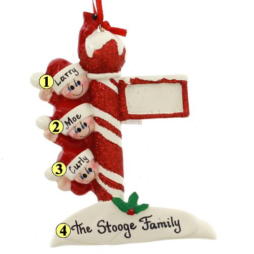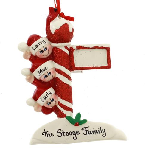 Happiness radiates from the faces of the family hanging out on this festive street post. Personalized with the names of your family or friends, this ornament is the perfect holiday gift. Measures 4.25 inches in height.