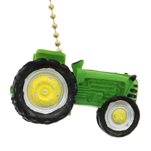 Green Tractor Fan Pull measures approximately 2 inches and is three dimensional with an attached 6 inch 18k-gold plated chain and connector. The detail of the bronze finish resin piece is extremely fine and accurate. Once the molding process is complete, each piece is painted with life-like color and detail that will not rub or wash off.
