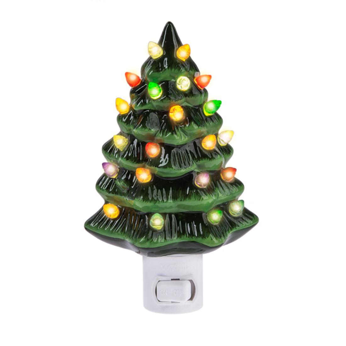 Add a touch of Christmas to any room with this Christmas tree night light that is decorated with different colored bulbs. Measures 6.5 inches in height.