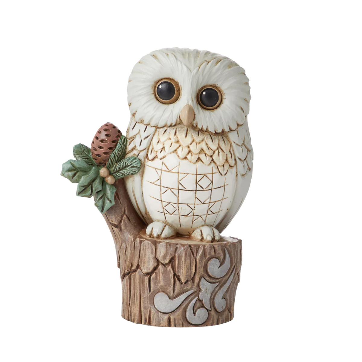 The owl is watching for all of the guest, sitting on a stump while getting some rest. This item measures 4 inches in height.
